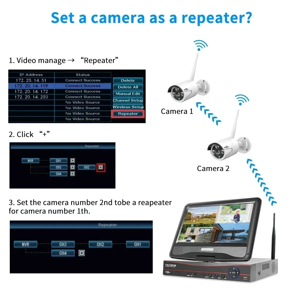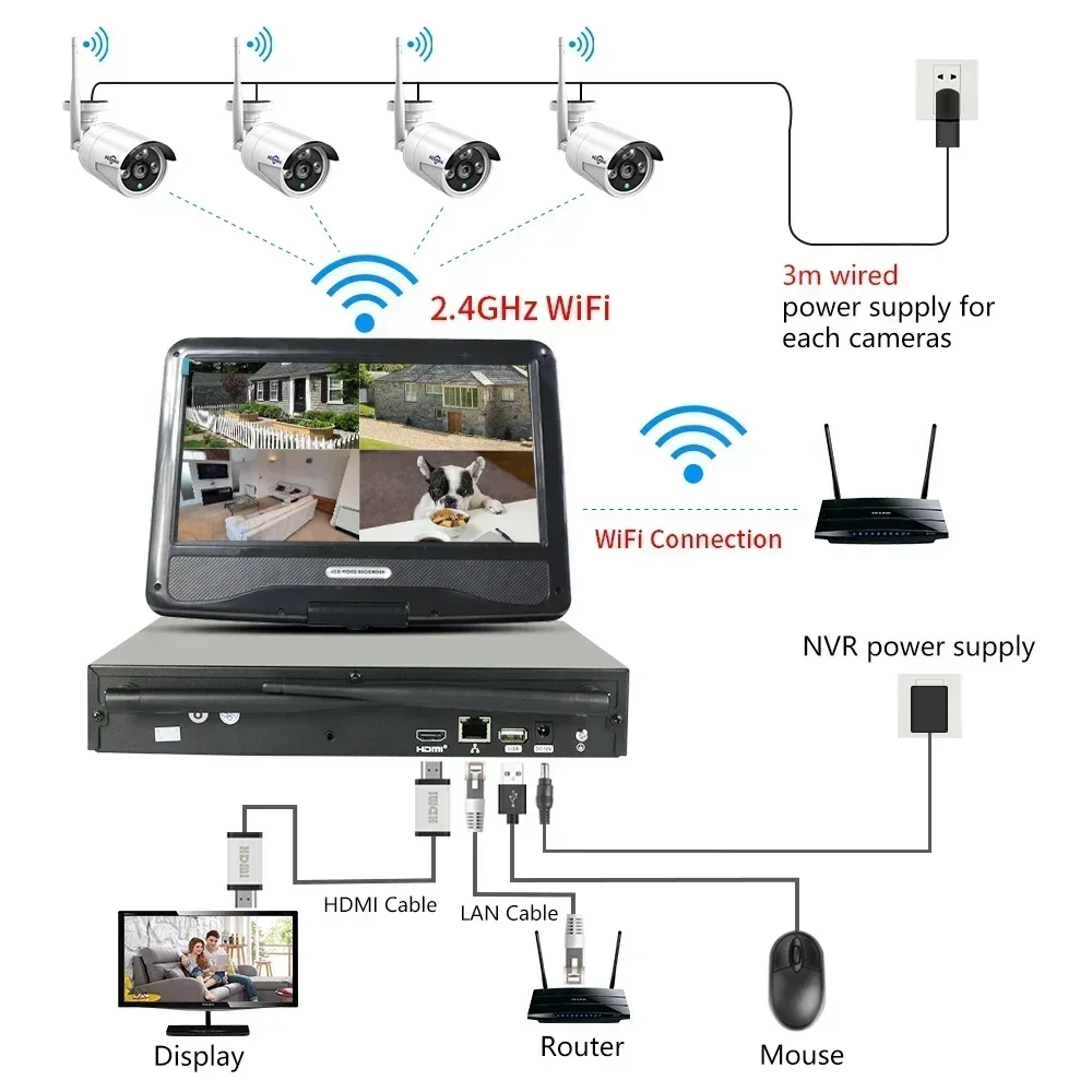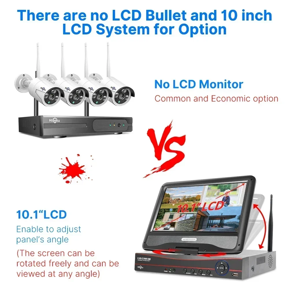 - Type 1: 8CH Wireless NVR Kit 10 inch LCD