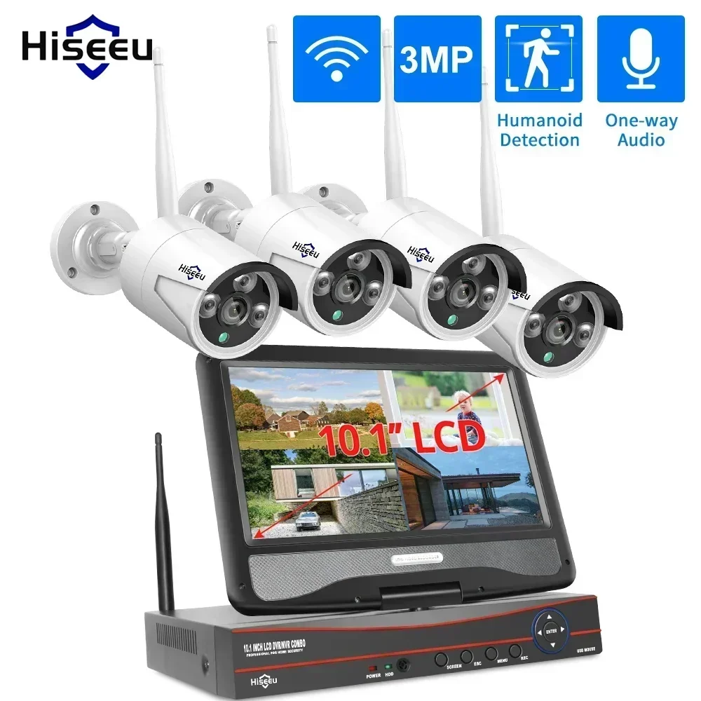 طقم كاميرا أمان لاسلكية Hiseeu ، كاميرات IP ، مقاومة للماء ، خارجية ، تلفزيون CCTV ، مجموعة نظام مراقبة ، بشاشة ، 8CH NVR ، 3MP