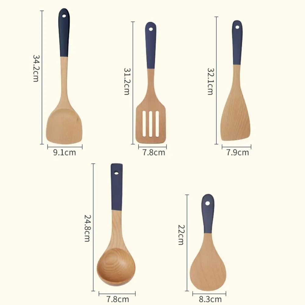 ملعقة المقلية مقبض طويل مقاومة للحرارة غير عصا خشب الزان الطبخ ملعقة الأرز ملعقة الحساء للمطبخ