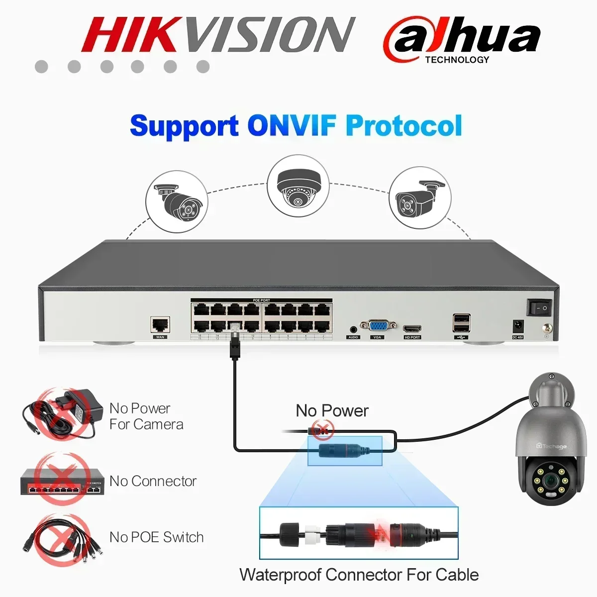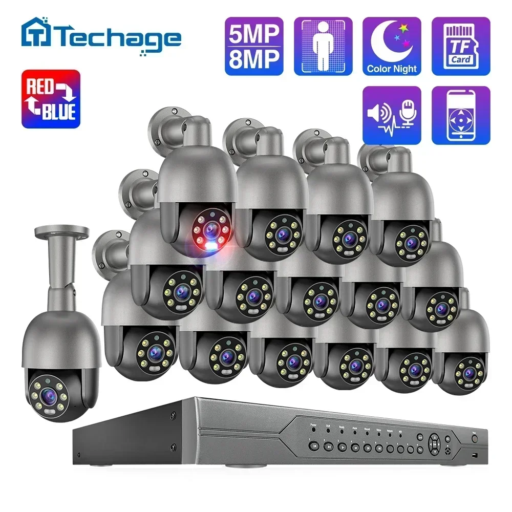 نظام كاميرا أمن IP Techage-PTZ AI POE ، مراقبة بالفيديو ، مجموعة NVR ، صوت في اتجاهين ، ONVIF خارجي ، H.265 ، 4K ، 16CH ، 5MP ، 8MP